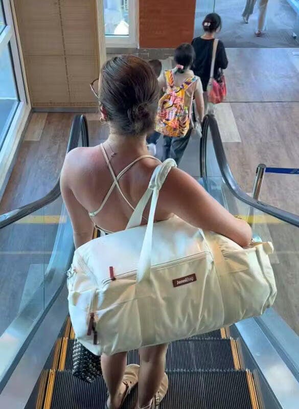 The bag is made from water-resistant Oxford fabric, suitable for rain and everyday travel conditions.
