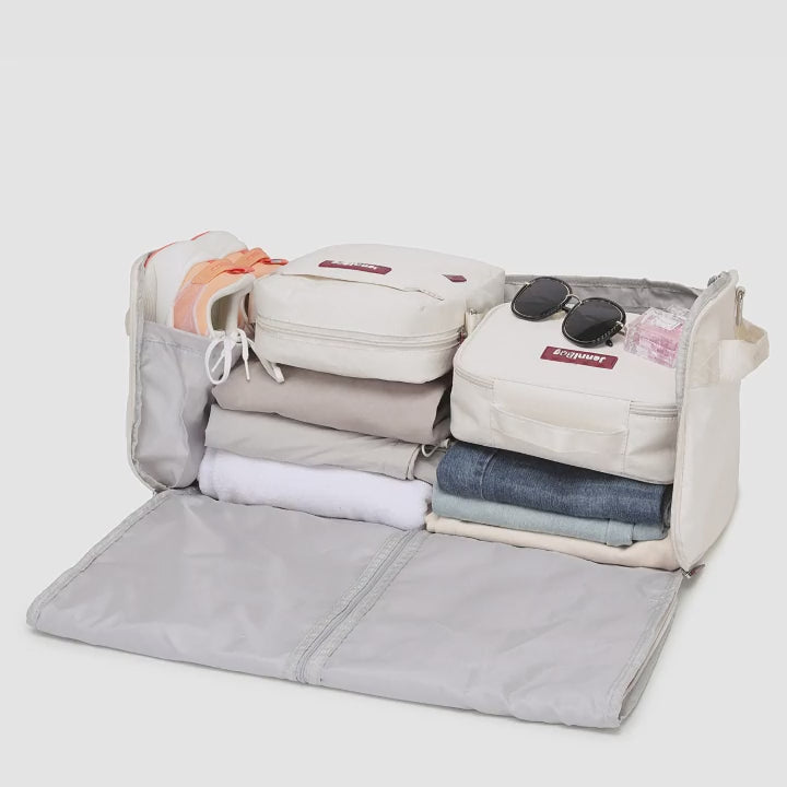 Clothes stay smooth, essentials stay visible and easy to reach.