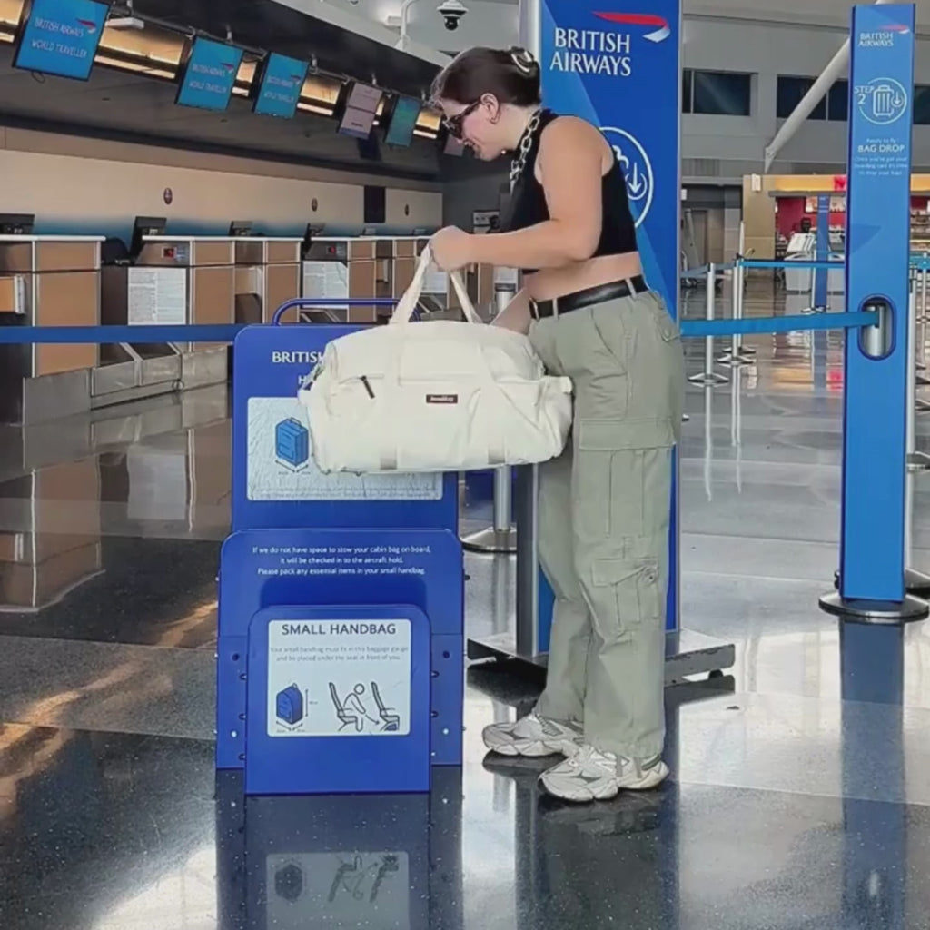ViaBag Travel measures 53 × 23 × 30 cm (21 × 9 × 12 inches) and is approved as a carry-on size.